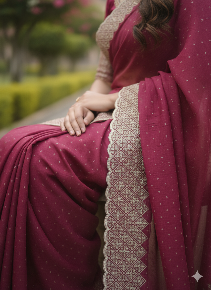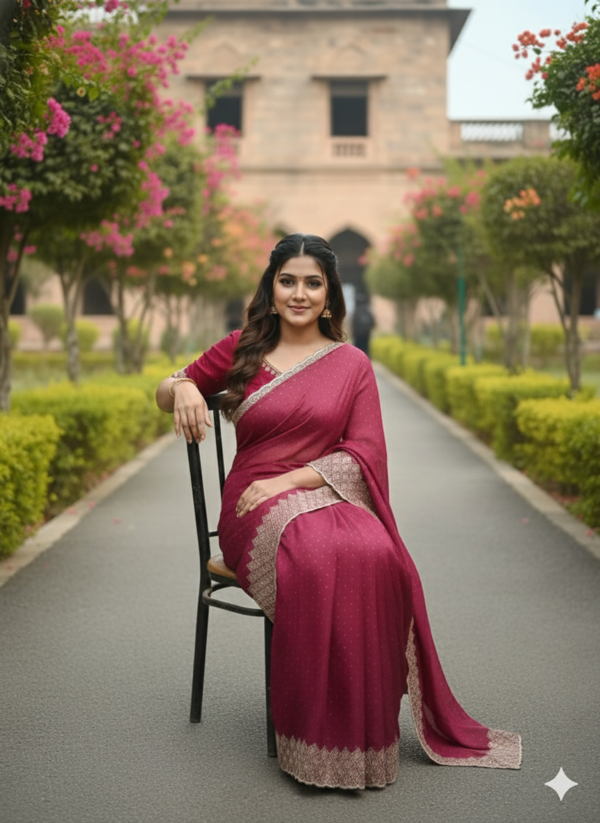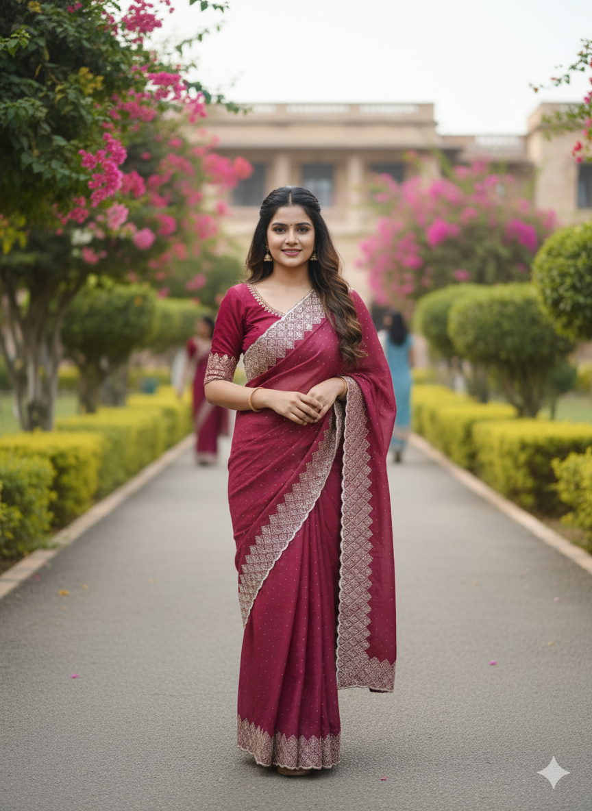 Elegant saree with a perfectly matching blouse piece, designed for a graceful and stylish look. Ideal for weddings, festivals, and special occasions—comfort meets timeless beauty.